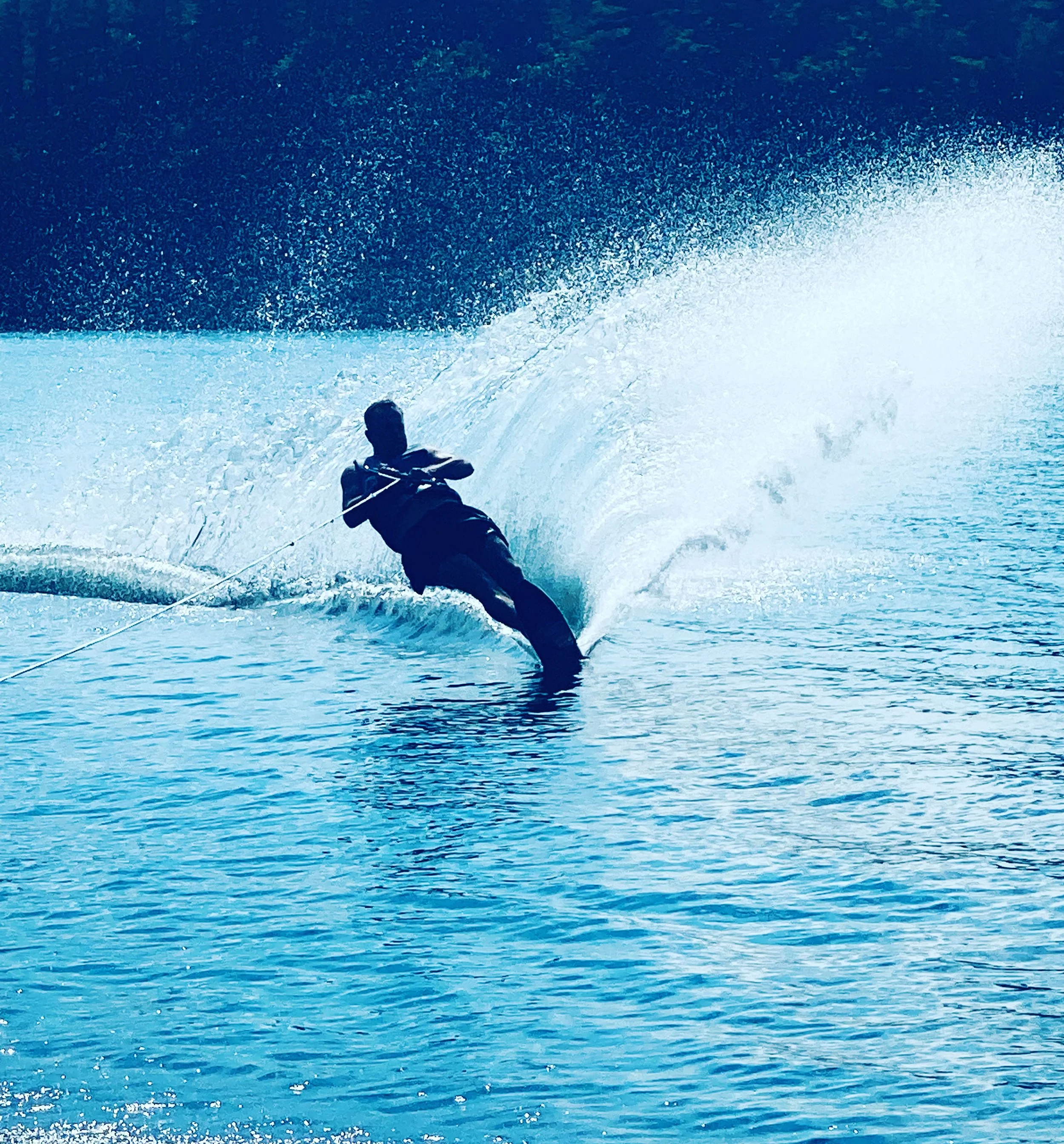 A day of travel, courtesy of friends. An end of summer weekday getaway to Lake Winnipesaukee. Charlie gets a little walk to the river before we leave for the white mountains. What a gorgeous lake this is! I’ve never stayed on this lake before. The mountain views from the water are stunning. Frank got to water ski and I got my good swim in, late afternoon. Quite choppy, I swam into a cove and back. Ocean like, the wind stirring up the surface. A good, hard swim. Sweet to be in the body of water belonging to a lake I’ve never been in before. While we were out in the middle of this gigantic, scenic lake, we spotted the mother loon and her young one. We couldn’t get close enough for a great picture, but it was a sweet scene to watch: the mother fishing for her young one, a teaching moment. Dinner tonight outdoors on the lake with a view of the slivery moon, just the tiniest line in the sky; a falling moon, lowering itself into the lake on a dark and starlit sky.