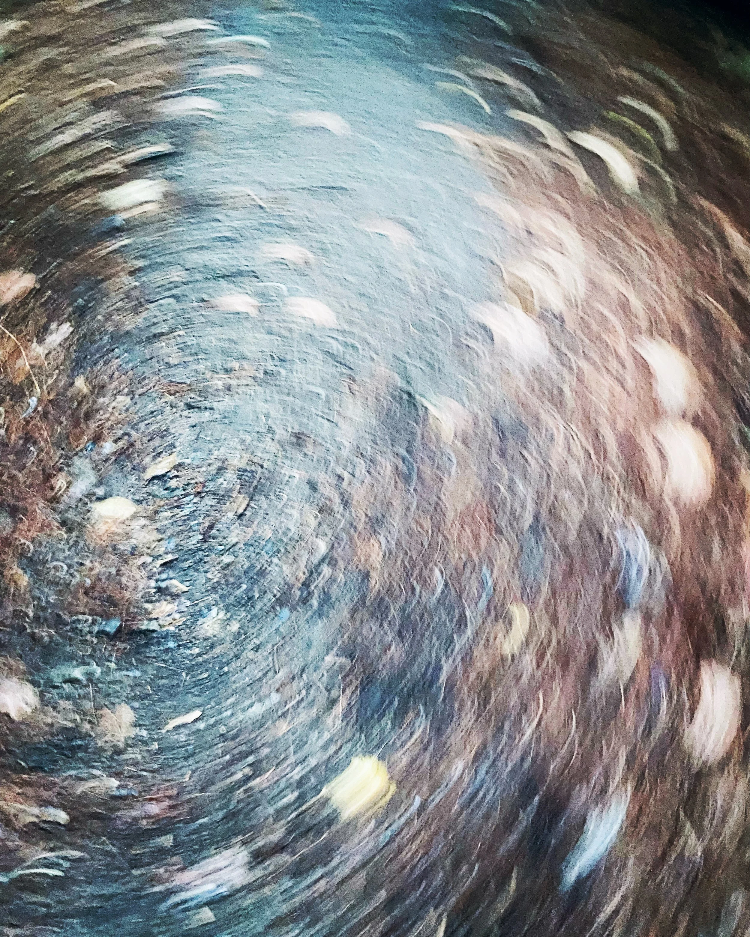 Sitting at the desk working, window open, I hear a workman talking to someone about something he found. . . I can only vaguely hear him, but there’s an earnestness in his voice, and I think, I probably should go and find out what it’s about. I thought he was talking to a co-worker in the yard, but when I go out onto the deck I see that he’s working upstairs and standing in the doorway above me. He’s on the phone. “Is everything all right?” I ask. Ah, he has found a baby turtle, he says. He’s on the phone showing it to his little girl. He found it in the driveway and wondered why it was there. I explained all about the turtle eggs being laid in June all around the yard, and then the hatching in September. “When you’re done,” I said, “I can take it over to the river.” And so I did. And he/she swam confidently away. A pleasant rain all morning. It cleared in the afternoon. Ran my Ukraine support group and a Play Lab online. My youngest asked if I wanted to swim, and since I’d walked Charlie (in the rain), I had thought maybe I wouldn’t swim today. But, of course, I said yes. It was a good swim. The sun even came out while we swam. A little bit. Water colder. Just a bit so. A very glassy surface. A lovely visit in the late afternoon yard with my dear friend and her dog. Air of September, and an earlier dusk.