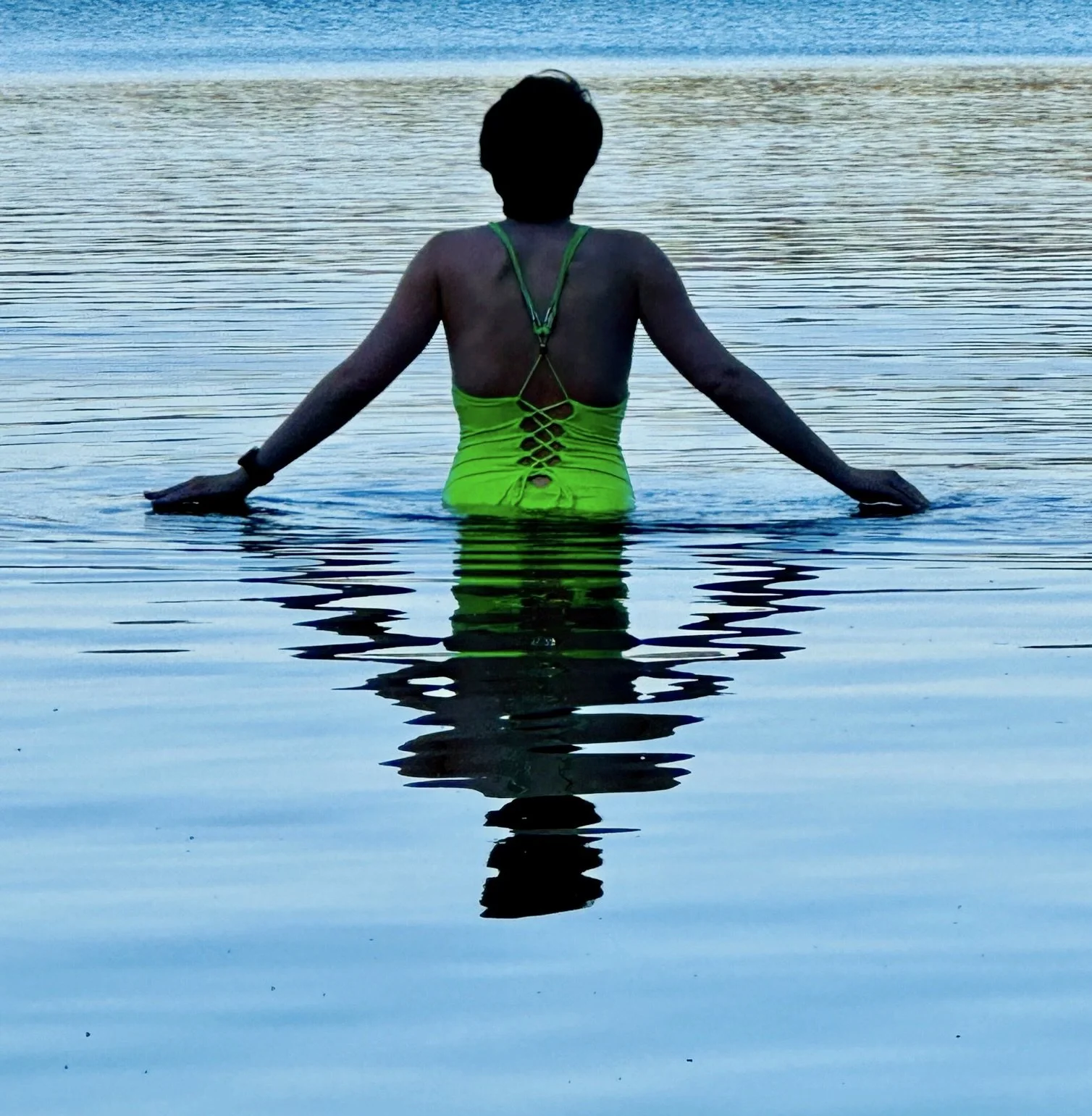 It’s possible, but unlikely, that I have been in the water of Farm Pond in April before today. 93 degrees. When I finally left my desk in the afternoon, I was startled by the heat. Nice and cool this morning on my walk in the woods before a poetry peer meeting online. I have skipped swimming this week. Spring is calling from the wetlands and woods, and I am giving myself some rest. Taking it easy. The heron is hanging around and startles every morning up into the sky above me. The mallards are happy in the brook. The birdsong is loud and pleasant and cheerful and ubiquitous. My friends are such astonishing poets. I had a poem too, the new one, from Monday. Good feedback. And in the afternoon I started writing another before I spent time with the special one. We went to Farm Pond, and it was crowded, of course. Hot, hot day, and there were other kids which was nice. And I wasn’t going to swim because I didn’t want to take my eyes off him. But my youngest came after work and had a bathing suit in her trunk and after she took a dive into the chill, I had to follow. Whoa! It was shocking to be in head first, and I didn’t want to stay in. Arms pleasantly tingly. Tonight, early evening, the bunny hopping around the flower garden in the center of the driveway and the purple buds are on the rhododendron by the front door and the forsythia is in bloom.