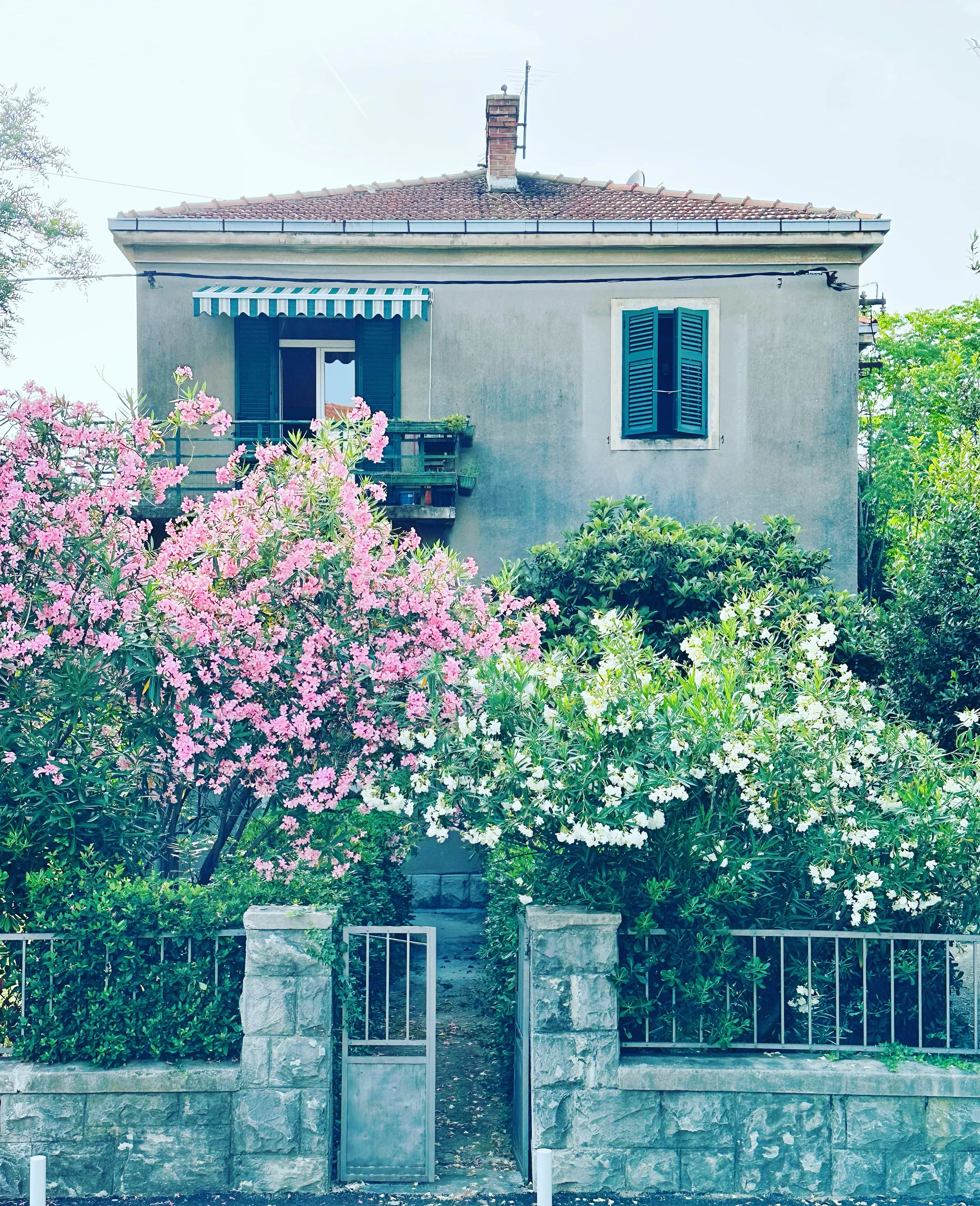 It’s 11:00 p.m. in Split, Croatia, and it’s so cozy in our hotel room in this comfy bed. Stayed up all day, mostly, since landing in Zurich at 6:00 a.m. We arrived here in Split around 1:30 p.m., met friends from our group at the airport, had a very long lunch in the late afternoon here at the hotel, outdoors on the patio as more and more people from our group arrived from various destinations around the world. Then, four of us took an Uber at 5:30—it was still hot and sunny — to a nearby beach. It was very crowded with happy families. Today was a national holiday for Croatia, Anti-Fascist Struggle Day. The Uber dropped us at the top of a hill and we walked down to the beach with the evergreens behind us and the rocky shore in front of us. I had a lovely swim with my friend from Sherborn, Po, and the water was warm and flat and extremely salty. Dinner, again, here at the hotel, family style as more guests in our party arrive. Lovely dinner conversations getting to know new people. In the morning, I look forward to a long walk around Split, getting my bearings. We are on land tomorrow; I hope for another swim at the beach we went to. And sightseeing before we board our boat on Saturday morning. Split is a stunning small city on the Adriatic sea with incredible views of mountains and trees, flowering bushes and wildflowers of all kinds. I’m so grateful to be here, exploring this fascinating country and coastline with friends.