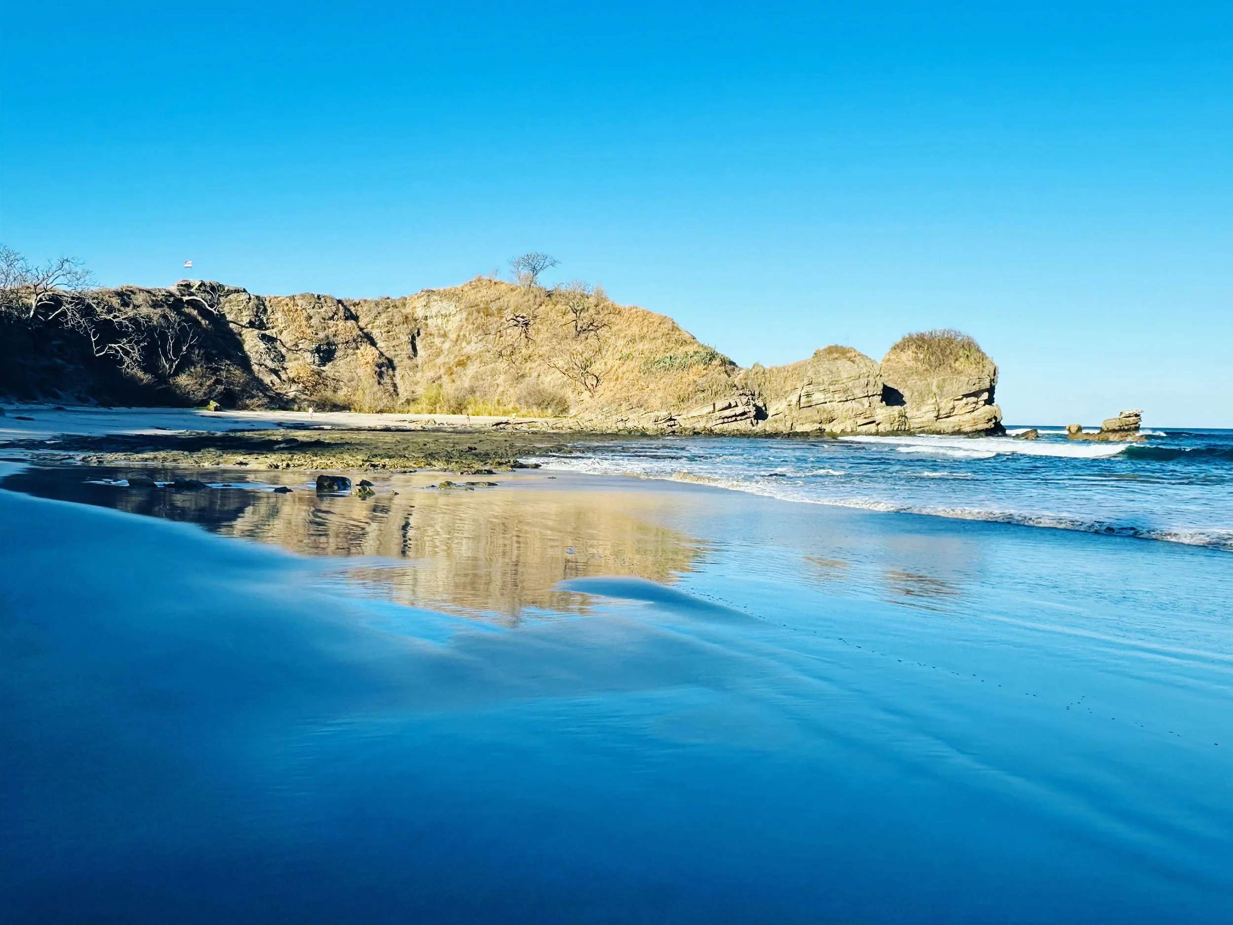 I am happy to rise early. Not much sleep last night, but rest. The coffee I drank after dinner so that I would stay up to write my poem kept me awake. Or, perhaps it was the energy of the poem draft that kept me awake. I didn’t mind. There is so much delicious rest of the body in bed, even if the mind is awake. That’s how it felt. And when I have a fresh draft of a poem it is running like juice in my thoughts. The pleasant sensation of: this is what I made; or, this is what I am making. I walked with my daughter, to Playa Pelada, over the rocks and tide pools and past the restaurant on the beach where we had such a scrumptious breakfast yesterday. Then we crossed onto Playa Guiones, and she went up the road from there to meet Frank for breakfast, and I walked back the way we had come after dipping into the waves. The sun was bright, but not too hot. I was home in time for coffee and toast before poetry workshop. There is such an excellent cohort right now in this monthly group. I was very pleased at my poem’s reception and got helpful feedback. And, afterwards, I sat still and revised the poem, sent it off, since it is a topical poem and I had a journal in mind. Then, I worked on my manuscript in preparation for meeting with Vanessa tomorrow. I must really focus now, on title and order, and really move into the readiness to submit. I swam in the pool. We all went down to the sea for a sunset swim, except Frank, who is a bit under the weather. Oh, the froth! The orange globe sinking, sinking, into the sea. I stayed, frolicking in the surf as the colors changed and my hands were dipped orangey/pink. We had a quiet night, each of us with our books or writing. A quiet, friendly evening with soft jazz. This afternoon, while I sat on the deck at my computer revising the poem, a bougainvillea blossom, lifted off its stem by a warm breeze, landed on my keyboard. Just right.