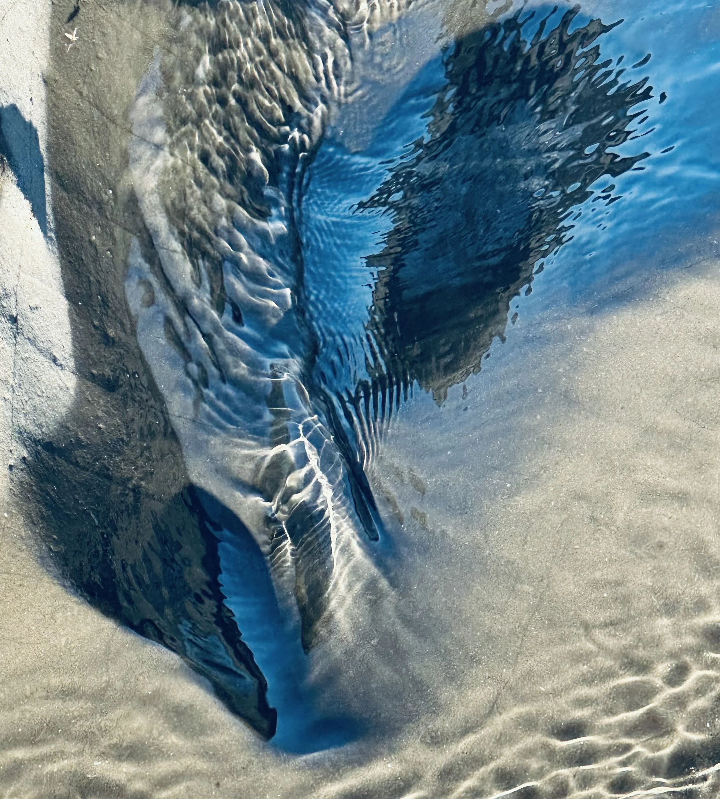My grandson, eating his delicious vegetable soup, tells me via Facetime tonight that he does not understand why we are taking such a long vacation. No explanation will solve the problem of him missing us and seeing our faces in sunshine and our bodies in bathing suits and the bright blinding sun in our eyes. Soon enough, we will return to him, eagerly. Tonight I am in a quite pleasant state of drowsiness. My morning walk, a lovely time to be in the tide pools taking pictures. I rose earlier than usual, 5:00 a.m., to work on poems before my walk. Later, we all went out for breakfast before I had a meeting with Vanessa on my poetry manuscript. We played pickle in the round robin at the tennis center again today in the scorching heat––at least it was for me. But I had a great time. Even as the oven inside me cooked. I am happy to be building up my endurance and I played decently. I really loved my meeting with Vanessa; and I made a tentative plan to take a writing retreat for myself in March to do some final work on the putting it together. My eyes are shutting now on another day where I got to see the orange glove dip into the sea as I swam in it.