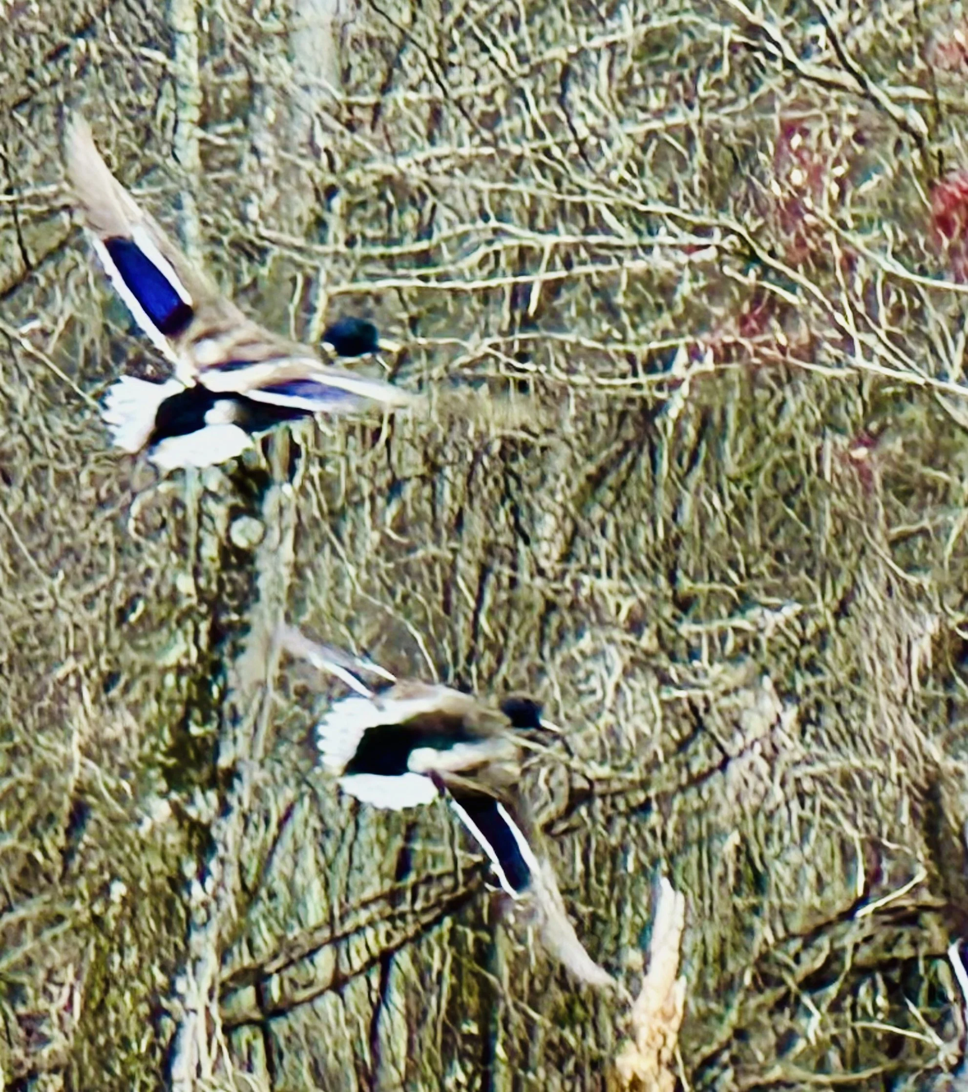 The mallard males ascending the brook after their morning conference. This is the only photo I could get this morning. It was cloudy and dull in the woods and the sun didn’t shine on the brook or the river. Charlie joined me. I felt quiet. I woke up and wrote a draft of a poem for tomorrow but it’s quite weak and I am not at all sure it’s worth working on. So, I just need to let it be a learning process. We had a family council in the tent, early afternoon. It was like a sauna, as my son had a great fire going. But for the first time we unzipped all the windows and let the birdsong in with the fresh, warm air. It’s a different kind of room with the windows open. I could see a bit of the river through the trees. Brittany came into the tent for the first time with us. Charlie came, after he wiped off his feet. Tonight Frank and I went to our friends’ house for a casual dinner with new friends. A delightful conversation. Tonight, Wave home. Sigh. All is right in the world for this hour with him beside me.