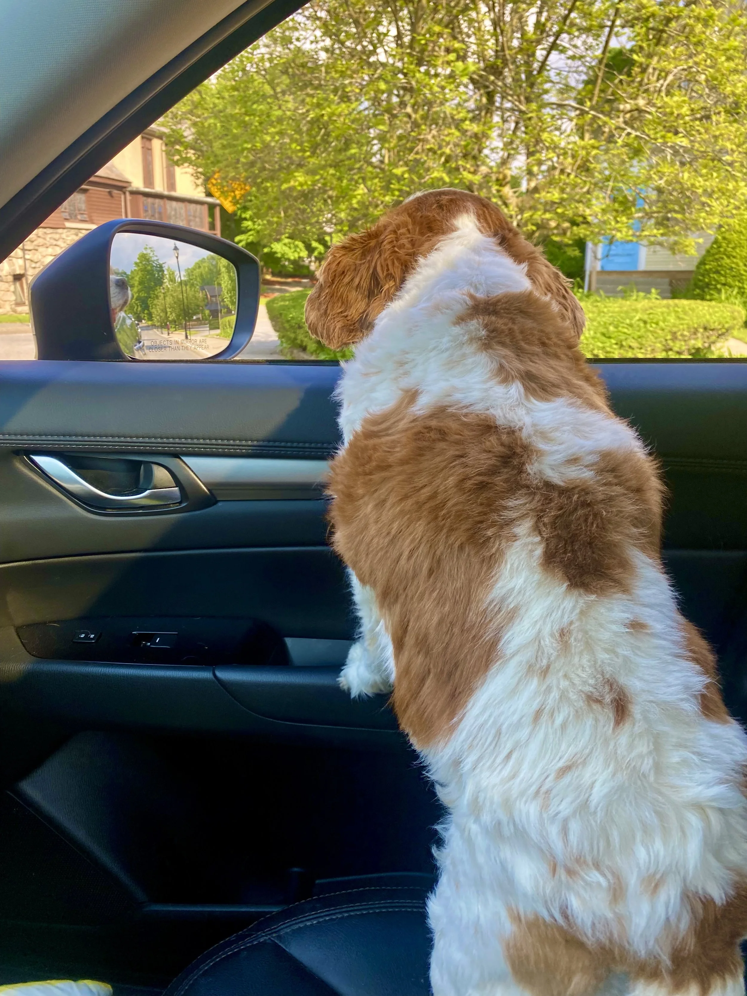 In that liminal space before being full awake, I am thinking about the need to water the garden. Then, as if the clouds have heard me, the rain spills and spills. Through the open windows I hear the pleasant rush of it, and I think, how wonderful, how unexpected. I know the day will turn nice, and this early morning rainstorm is a wonderful garden refresher. We take a day trip to see a dear friend in Duxbury, and it is sunny and warm with a pleasant breeze. The water is cold, but both my daughters, myself and my friend Liz dive in and refresh ourselves, chatting away. Home in the late afternoon, I nap in the car the whole way as Frank drives. And I am glad I do––there’s a kitchen to clean up and laundry to do, and I want to get a poem for tomorrow morning. I face the blank page. I read a couple of poetry and creativity books a bit to get something going. I am blank still. How is it that I finally get started? It happens, and I have a first draft. Frank and I go out at dusk with the mosquitos and the dogs to see the garden and I end up watering everything because it has been a hot day. A new ending line comes to me for the new poem. When I go in I write it down. I will sleep on it tonight and send it in the morning. When Brittany wants to go in the car with my daughter she barks and barks and barks until she is invited. This is their special time, their special bond.
