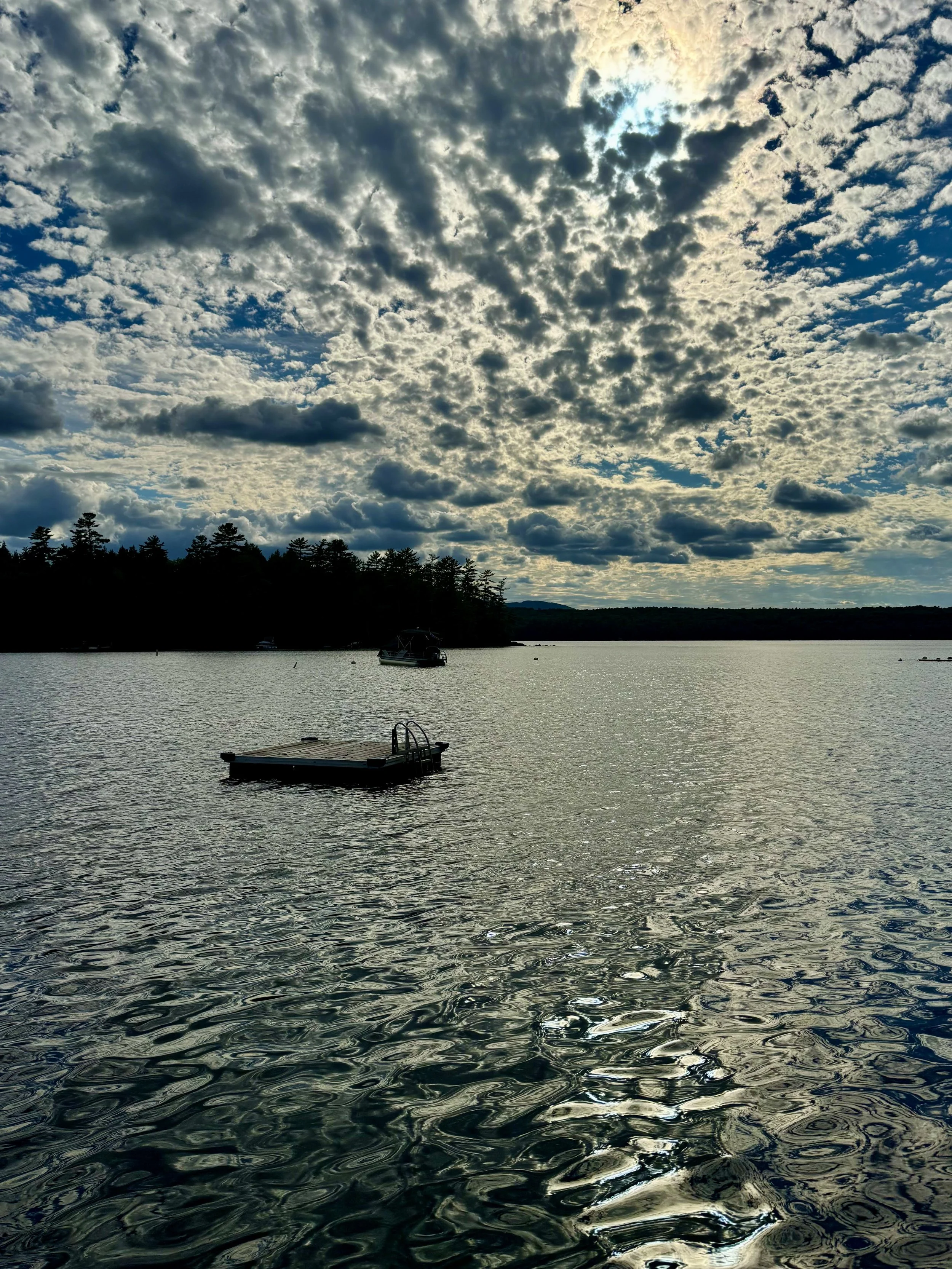 First one up, a quiet house, a stillness on the lake. Hush, and no rush. Out for my six mile walk and listening to a podcast, Rattlecast, and an interview and reading with the poet Gregory Orr. Very moving. A lovely morning. A quiet day. Quite cool. Everyone relaxing. No pickle today. Very little swimming. Drove with the girls and Wave to get bagels. The sweet small towns around the lake. I led my Israeli group, of course, mid-day. Everyone retreating into books and rest. Sun came out in the latest part of afternoon and sparkled the lake. A birthday dinner at our friend’s lakefront. Lots of laughter. Wave very focused on his mother. Wants her all-attention. Played cards for a little while with me, but mostly wanting his mother. Filling himself up with her. We have one more day of play and the sun coming back.